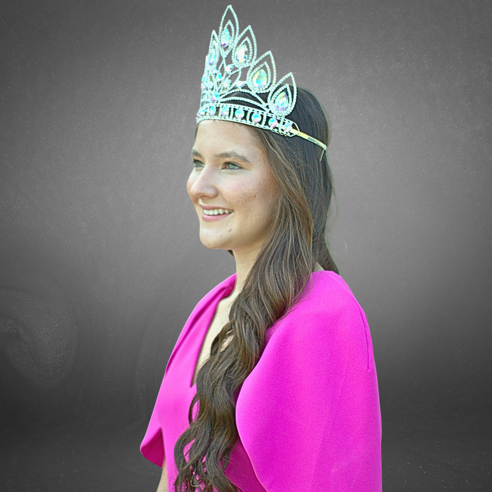 A statement of beauty and tradition, this crown stands tall with radiant brilliance. Its tiered design symbolizes rising success and is perfect for queens who want presence without the weight of a full regal crown.